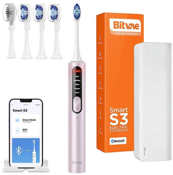 Bitvae Sonic toothbrush with app, tips set and travel etui S3 (pink) (S3 Pink)