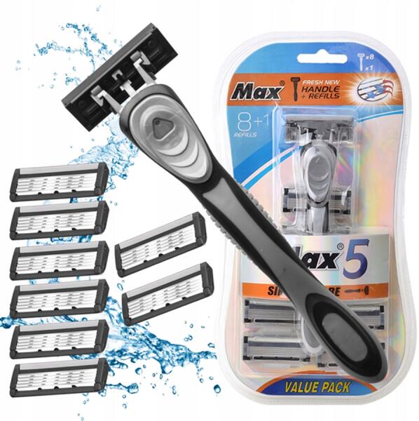 Eldobható mozgófejes 5 pengés borotva + 8 db tartalék penge, XXL készet Eldobható borotva + 8 db tartalék penge XXL készet  ➡️ Hosszantartó használat A 8 pengés készlet hosszú távú használatot biztosít gyakori csere nélkül. A nagyszámú pengének köszönhetően a felhasználók hosszabb ideig élvezhetik a kényelmes, sima borotválkozást, pénzt és időt takarítva meg a további tartozékok vásárlásán. ➡️ Sima borotválkozás A többpengés pengékkel felszerelt borotva alapos és sima borotválkozást tesz lehetővé, minimalizálva az irritáció és a vágások kockázatát. A pengék pontosan illeszkednek a bőrhöz, így egyetlen mozdulattal tökéletesen sima bőrt biztosítanak. Könnyű használat A borotva ergonomikus nyele kényelmes fogást biztosít, így könnyen kezelhető a nehezen elérhető területeken, például az állkapocs és a nyak körül. A kényelmes markolat növeli a borotválkozás kontrollját, csökkentve a nem kívánt vágások kockázatát. ➡️ Időmegtakarítás A kiváló minőségű pengék gyors és precíz borotválkozást tesznek lehetővé, így nem kell ismételten ugyanazokat a bőrfelületeket átvágni. Ezáltal a borotválkozási folyamat hatékonyabbá válik, amit különösen a gyors tempójú életmódot élők értékelnek. Jellemzők: